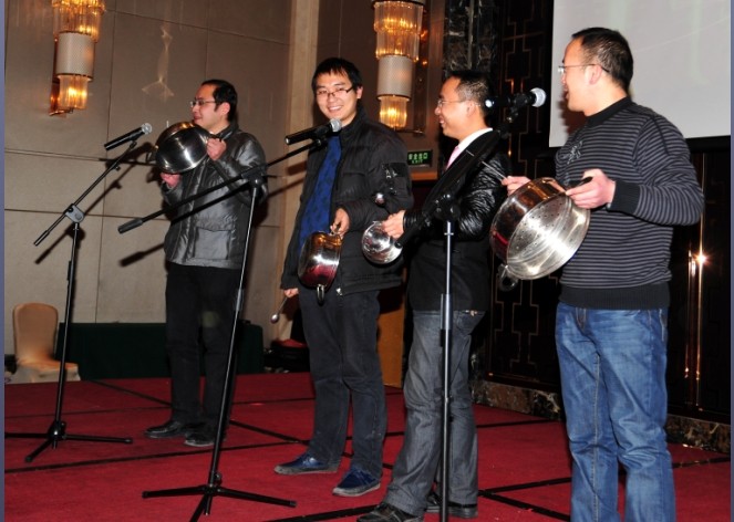 年會現(xiàn)場充滿了激情、熱烈、活躍的氣氛。首先,晚會在在銷售部同事們精心準備的“三句半”中歡樂開場;